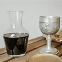 In a wine blending ritual, two different wines (usually one red and one white) are combined in a carafe to symbolise unity. The couple then pour a glass of the blended wine for each other as the celebrant raises a toast.